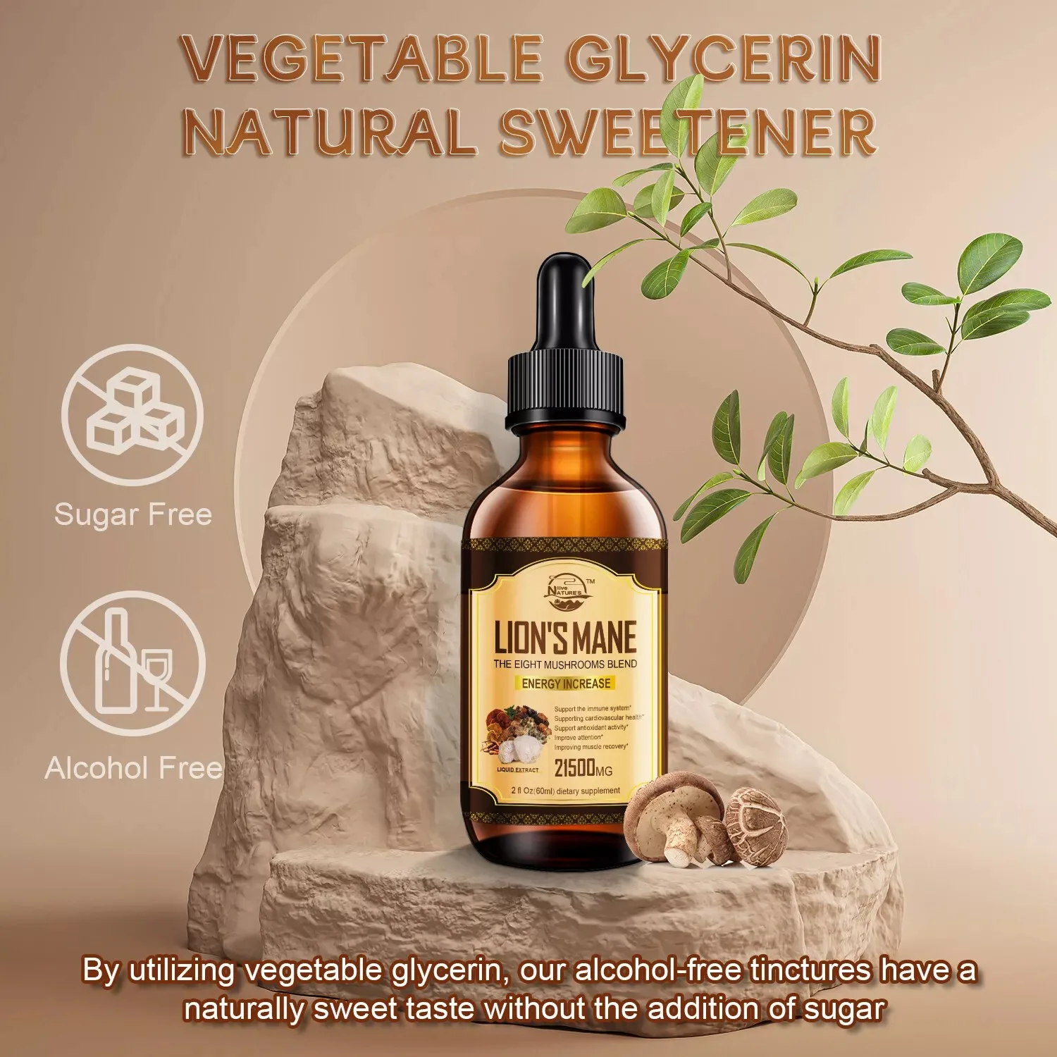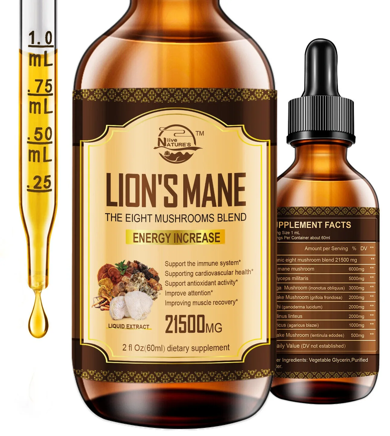 Key Features of the 60ml Lion Mane, Chaga Mushroom Complex Reishi Extract Liquid Herbal Drops