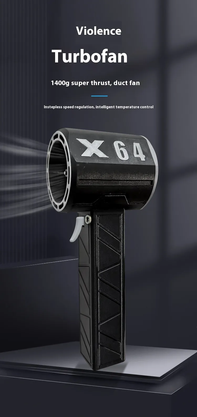- Turbo Fan Technology: 64mm turbo fan for powerful wind speeds up to 1400g.