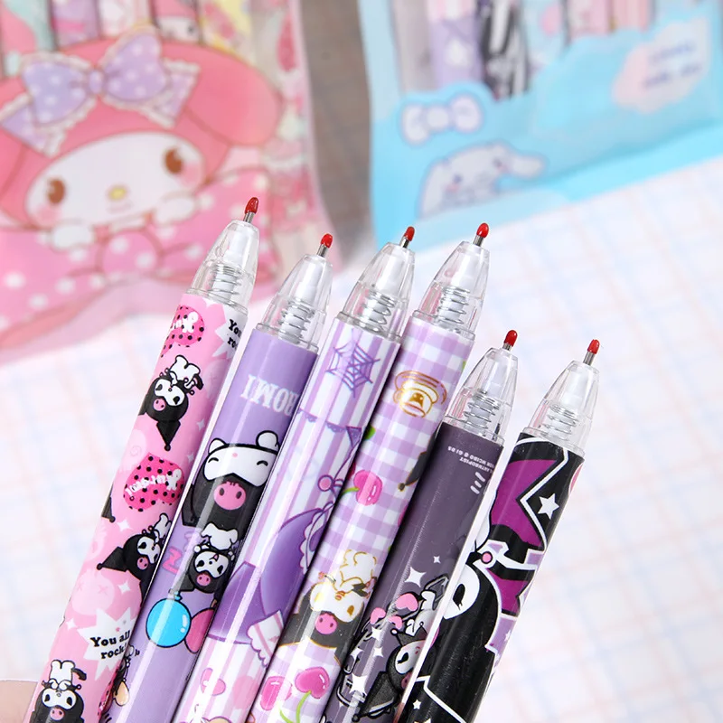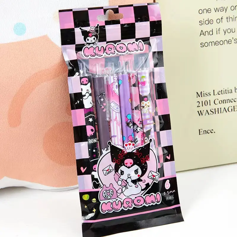 The 6Pcs/Set Kawaii Sanrio Hello Kitty 0.5mm Gel Pens are the perfect blend of functionality and fun. With their cute Kuromi and Hello Kitty designs, these pens offer a delightful writing experience while serving as charming additions to any stationery collection. Whether for school, work, or as a thoughtful gift, these gel pens bring a touch of Sanrio magic to every writing task.