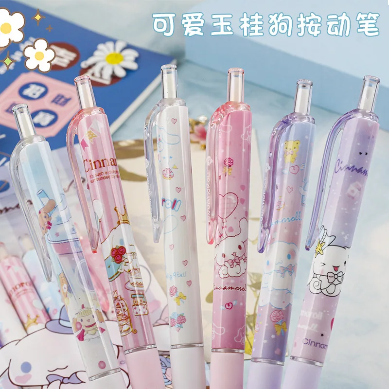 6Pcs/Set Kawaii Sanrio Hello Kitty 0.5mm Gel Pens Cute Kuromi Press Gel Pen Cartoon Kids School Student Stationery Supplies Gift