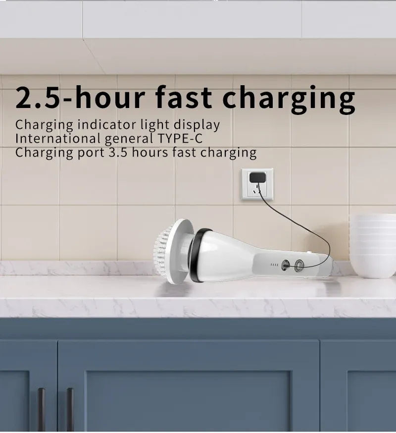 [Wireless Electric Cleaning Brush]] Powered by 2500mAh battery, this cleaning tool offers prolonged usage without the hassle of cords. Enjoy efficient and enduring performance in your cleaning routine.