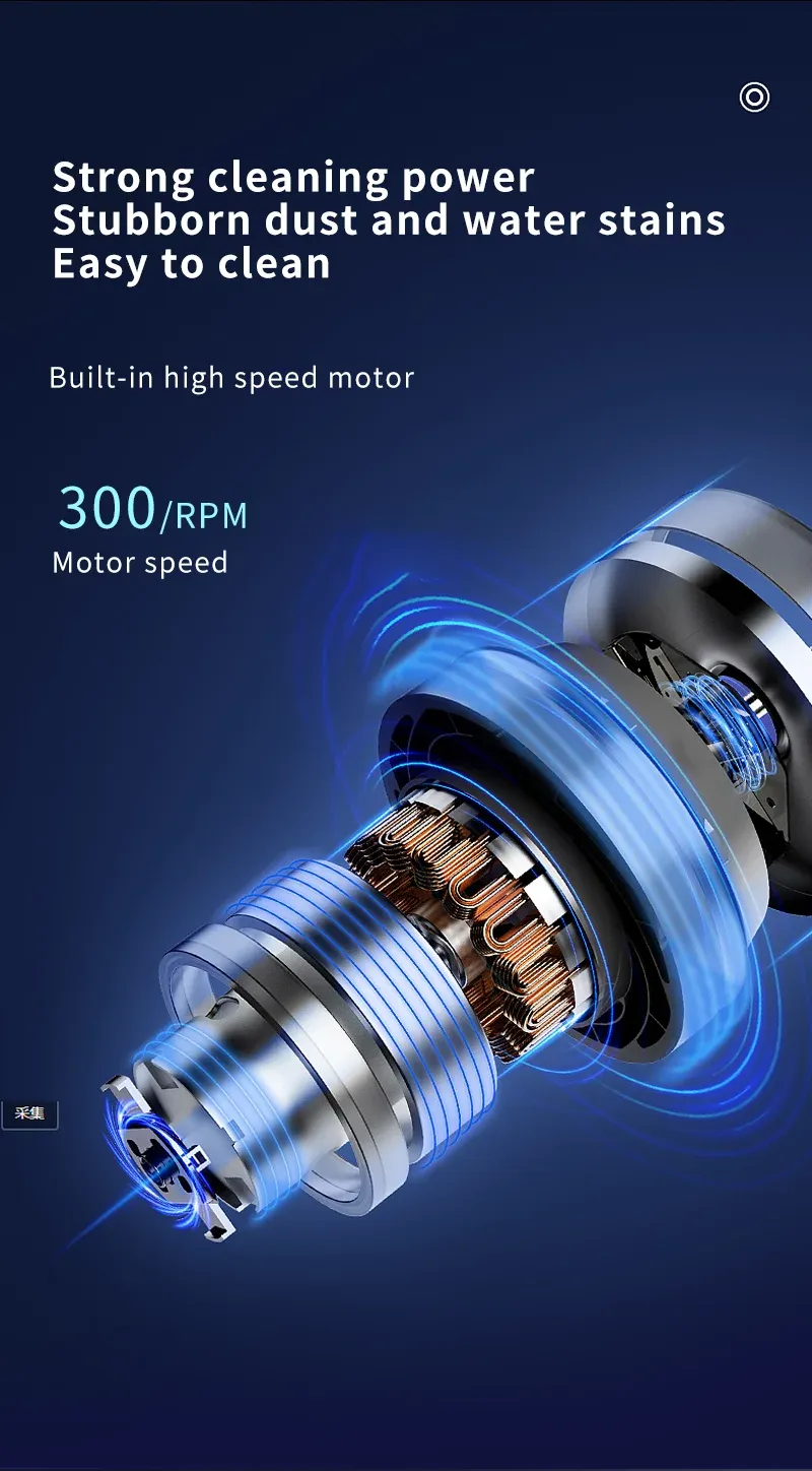 [Built-in High-Speed Motor]] Equipped with a high-speed motor, this device delivers powerful and effective cleaning. Tackle dirt and grime with ease, thanks to the impressive cleaning capabilities.