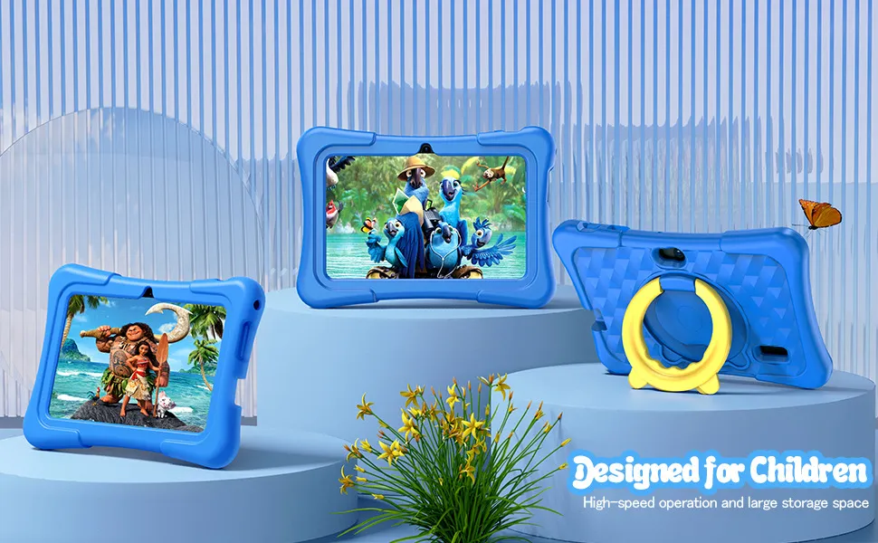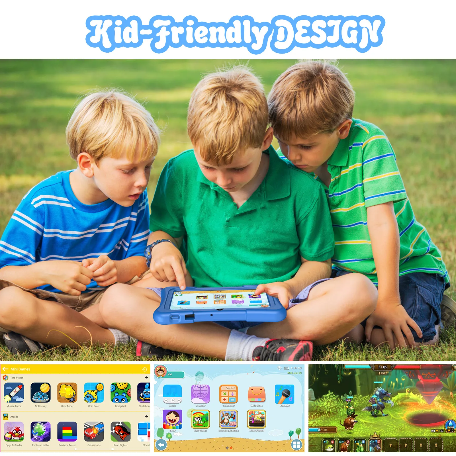 📚 7-inch Children’s Educational Tablet with Protective Silicone Cover & 360° Rotating Handle Stand