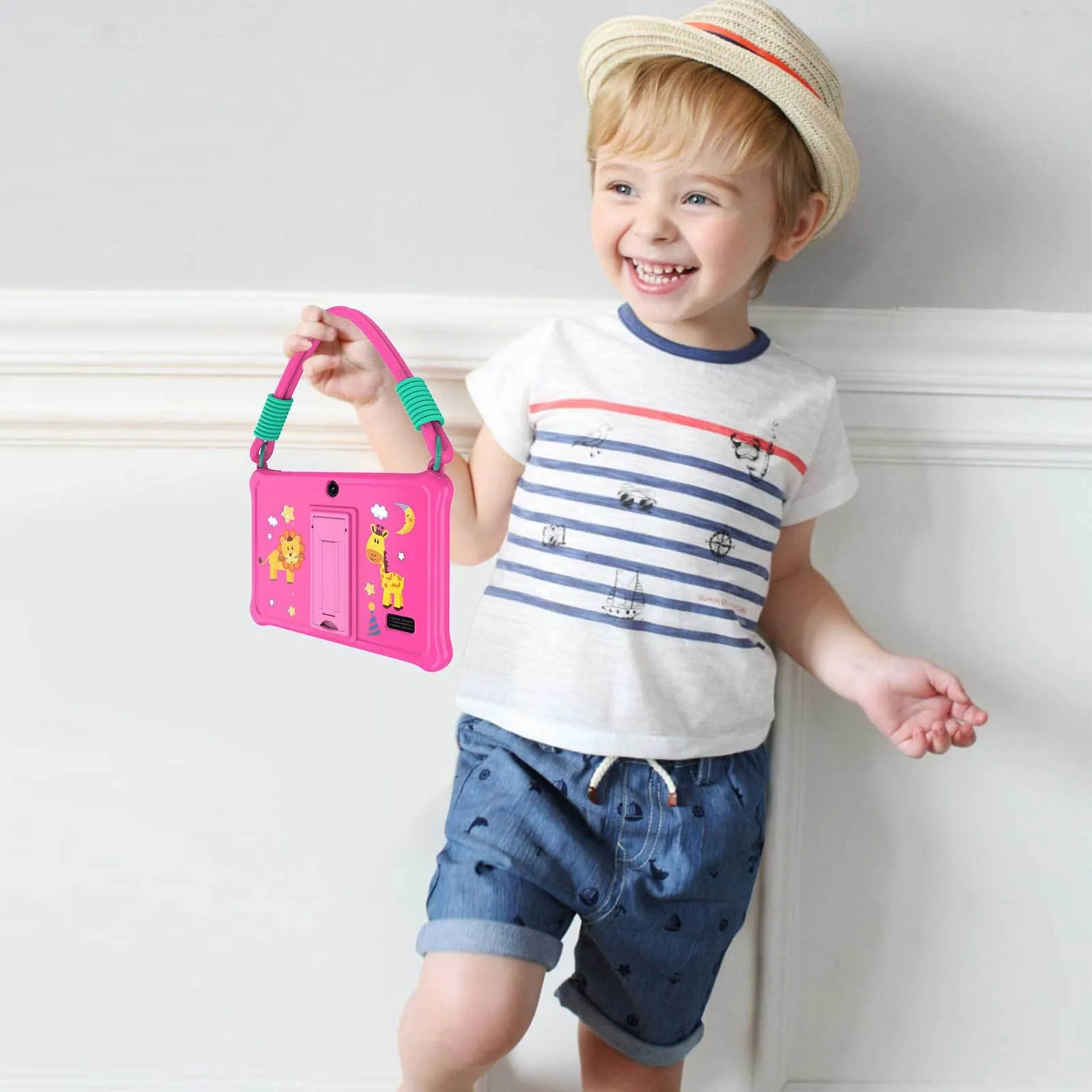 Equipped with an adjustable carrying strap, kids can easily carry their tablet anywhere – at home, in the car, or outdoors. The strap also allows hands-free use, making it more comfortable for watching videos or online learning.