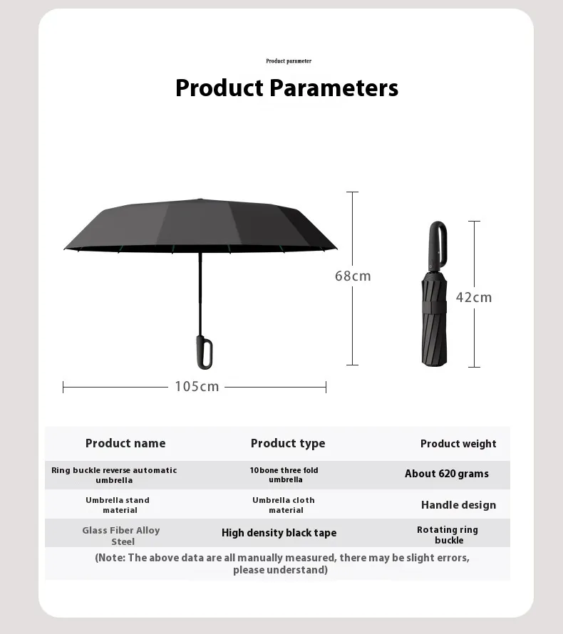 The unique ring buckle design adds both style and functionality, allowing the umbrella to be easily secured when not in use. Its sleek and modern look makes it a fashionable accessory, while its compact and lightweight design ensures that it’s easy to carry in your bag, car, or backpack. Made from high-quality materials, the 84-Bone Ring Buckle Umbrella is built to last, with a water-resistant canopy that dries quickly and a sturdy frame that resists bending and breaking. Whether you're navigating through a downpour or avoiding UV rays, this umbrella provides reliable, long-lasting protection.
