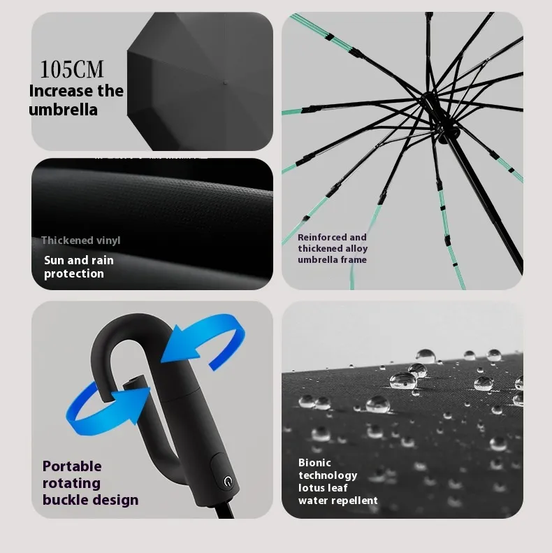 Designed for both practicality and elegance, this umbrella is perfect for everyday use as well as travel. Its large canopy ensures that you stay fully covered, while the automatic opening mechanism adds a layer of convenience, allowing you to deploy it instantly in any situation. The UV protection makes it ideal for outdoor activities like walking, hiking, or attending events. With its combination of durability, ease of use, and stylish design, the 84-Bone Ring Buckle Umbrella is a must-have accessory for those who want both function and flair.