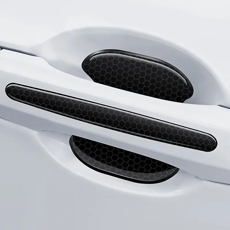 Specifications: Features: Flexible, scratch resistant Type: Door Protector Applications: Car Doors Material: 100% PVC Color: Black Net Weight: 0.05kg/ 0.11 lbs Handle Sticker Dimension: L * W 8x8cm/ 3.1x3.1 inch Handle Protectors: