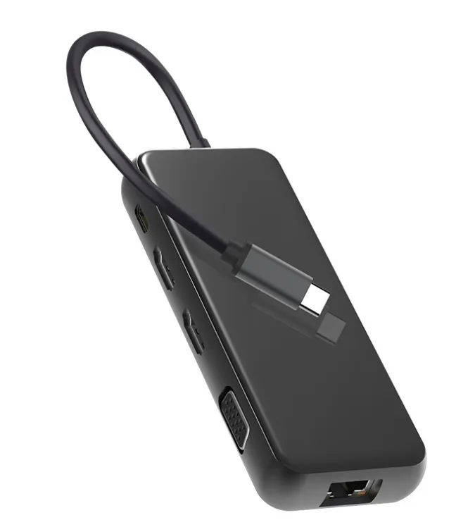 Expand your device’s capabilities with the 9-in-1 Dual HDMI + VGA + Gigabit Network Card Hub, a multifunctional solution designed to enhance your productivity and connectivity. This versatile hub offers an array of ports including dual HDMI, VGA, and a Gigabit Ethernet port, providing a comprehensive range of connectivity options for your laptop or desktop. Whether you're setting up multiple monitors for a workstation or connecting to a projector for presentations, this hub supports dual 4K HDMI outputs and a VGA output, allowing you to create a seamless and efficient multi-display setup.