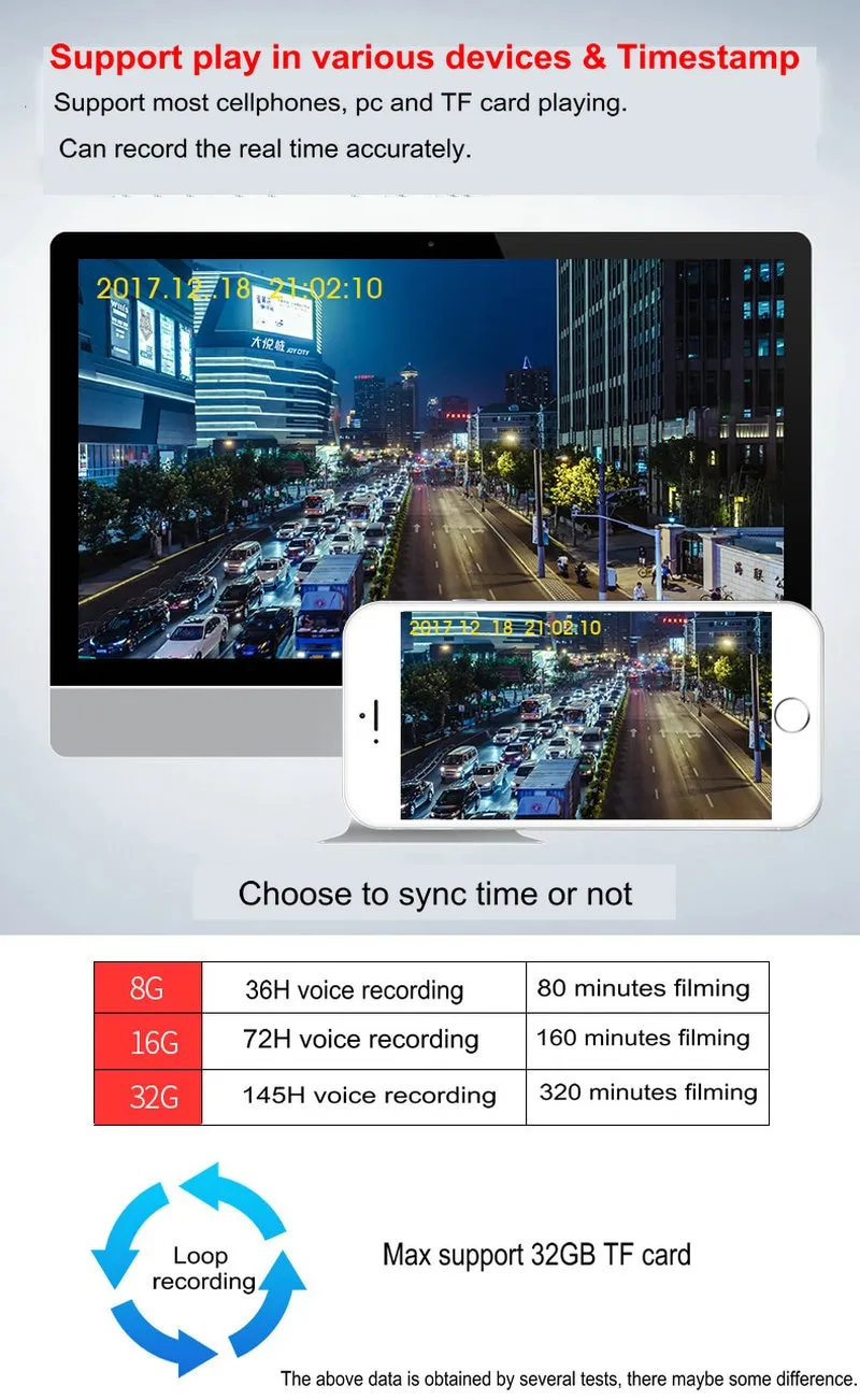 10. 8 GB TF card saves time: Record Constrained 280 minutes for about 80 minutes