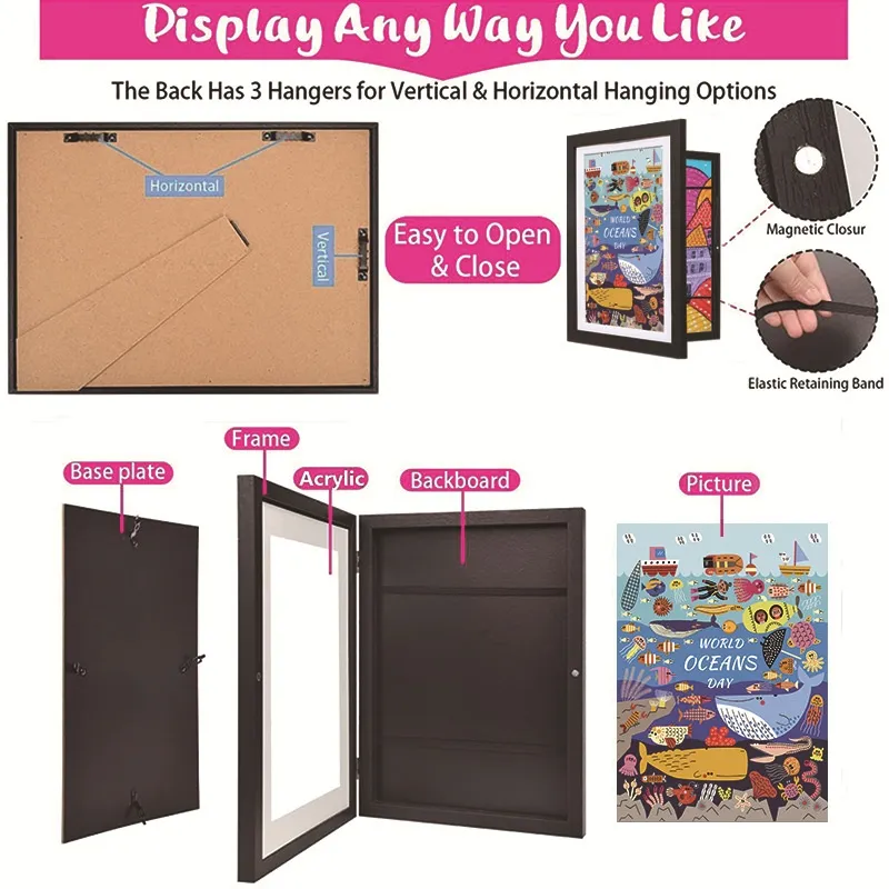 - Easy Access: Magnetic closure allows for quick and effortless swapping of artwork without damaging the pieces, making it simple to update the display as new masterpieces are created.