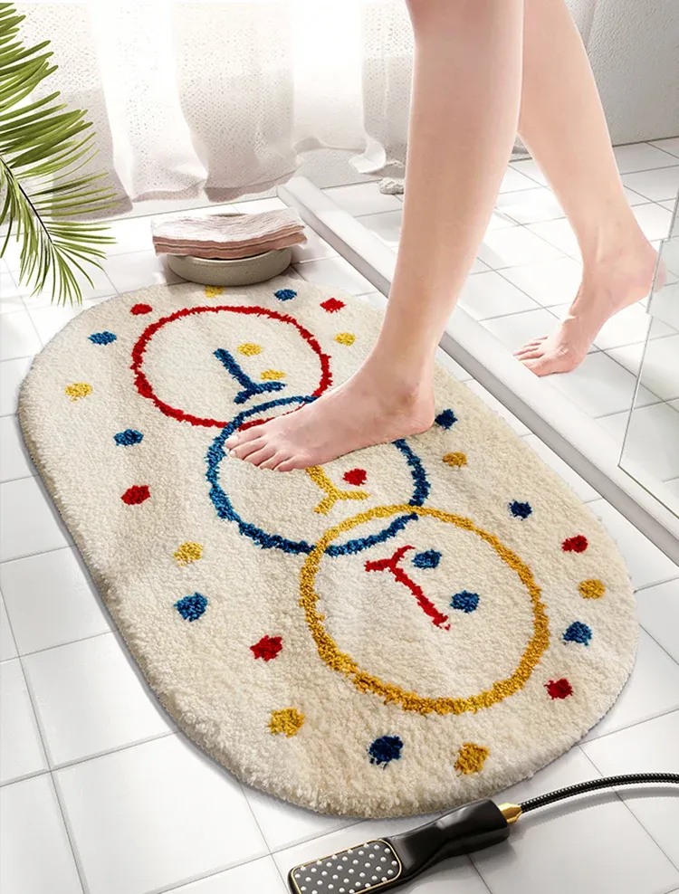 Chenille rugs are known for their softness and plush texture. These rugs are made from twisted fibers that create a soft, absorbent surface. Chenille absorbent rugs are ideal for areas where you want both comfort and water absorption, such as bathroom mats or entryway rugs.