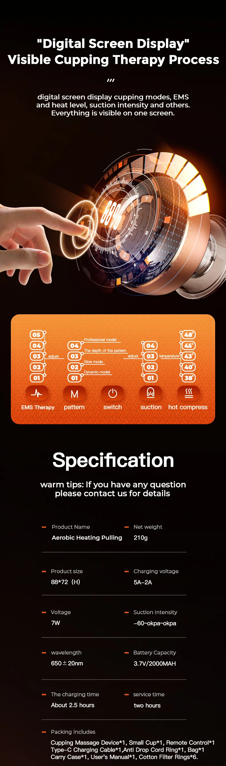 The massager also functions as a smart cupping device, with adjustable suction levels that mimic the traditional cupping therapy technique. This helps to relieve pain, reduce inflammation, and improve blood flow in targeted areas, making it ideal for muscle recovery, stiffness, or soreness. The smart suction feature ensures safe and effective results while minimizing discomfort during use.