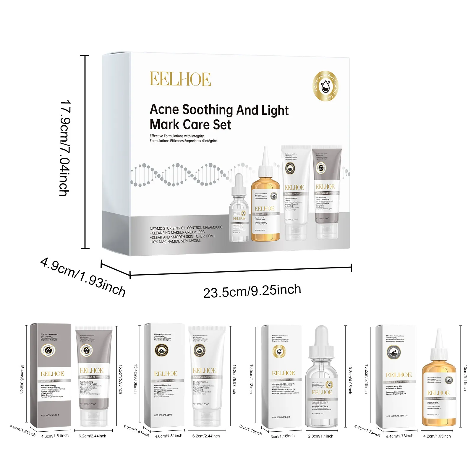 2. Brightens and Evens Skin Tone In addition to fighting acne, this skincare suit includes brightening agents that work to even out your complexion. It helps to reduce the appearance of dark spots, acne scars, and hyperpigmentation, leaving your skin with a healthy, radiant glow.