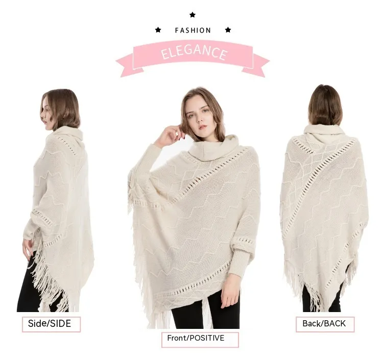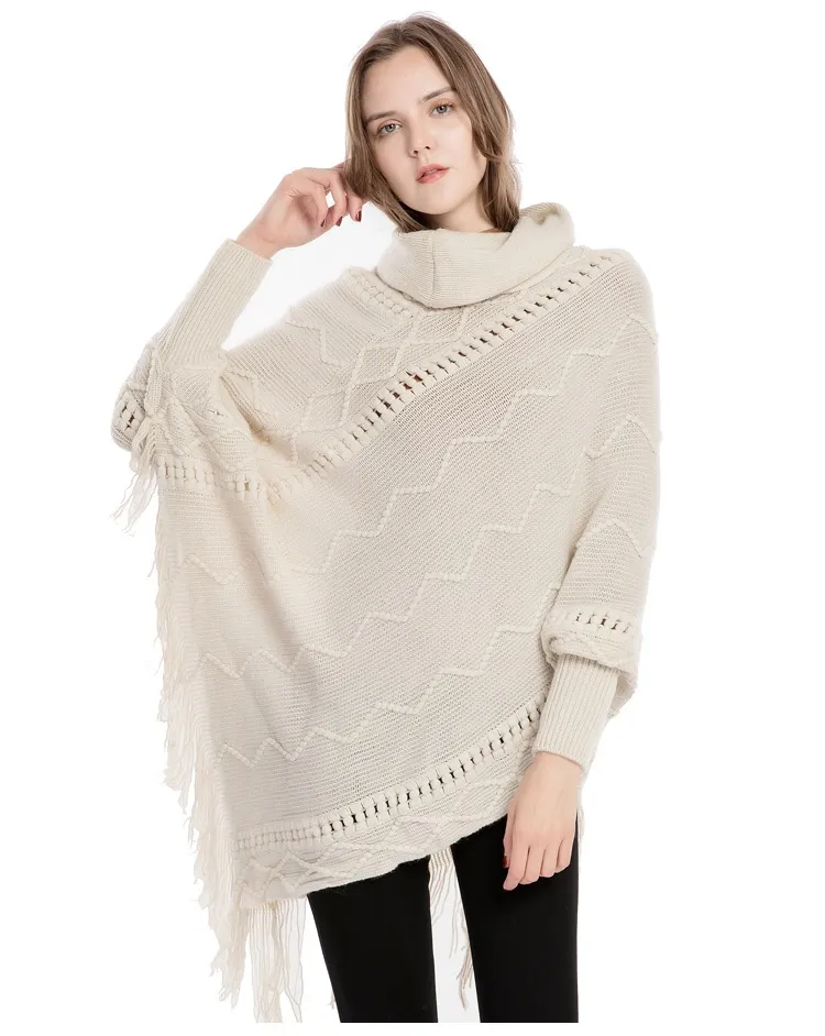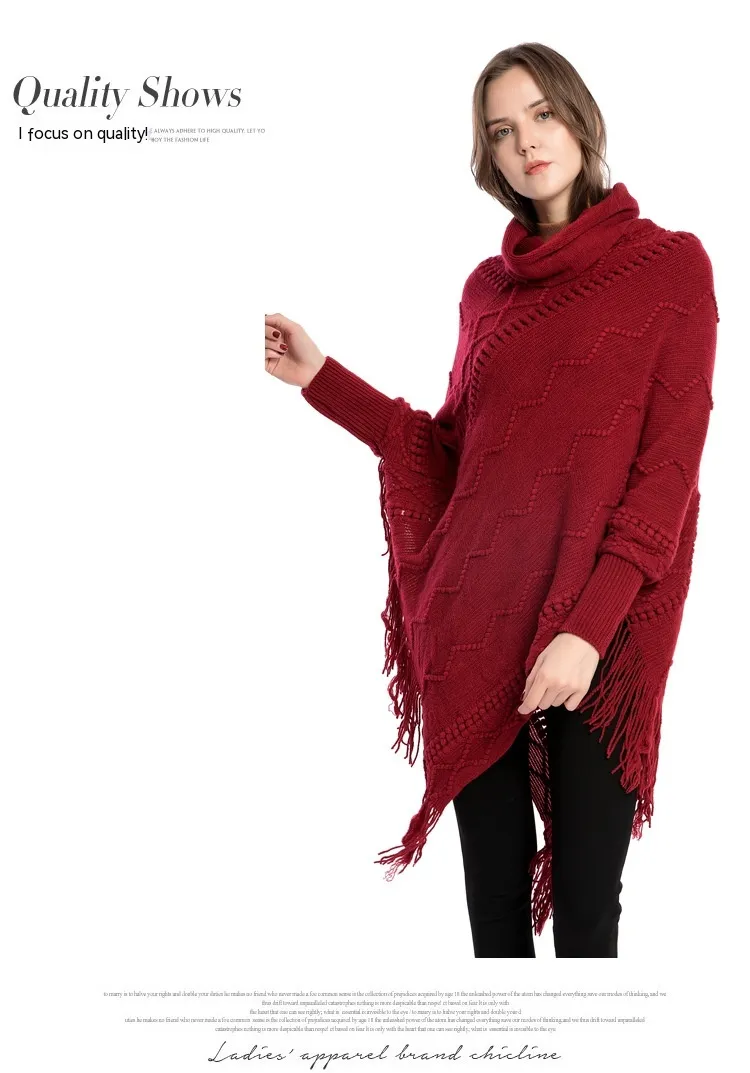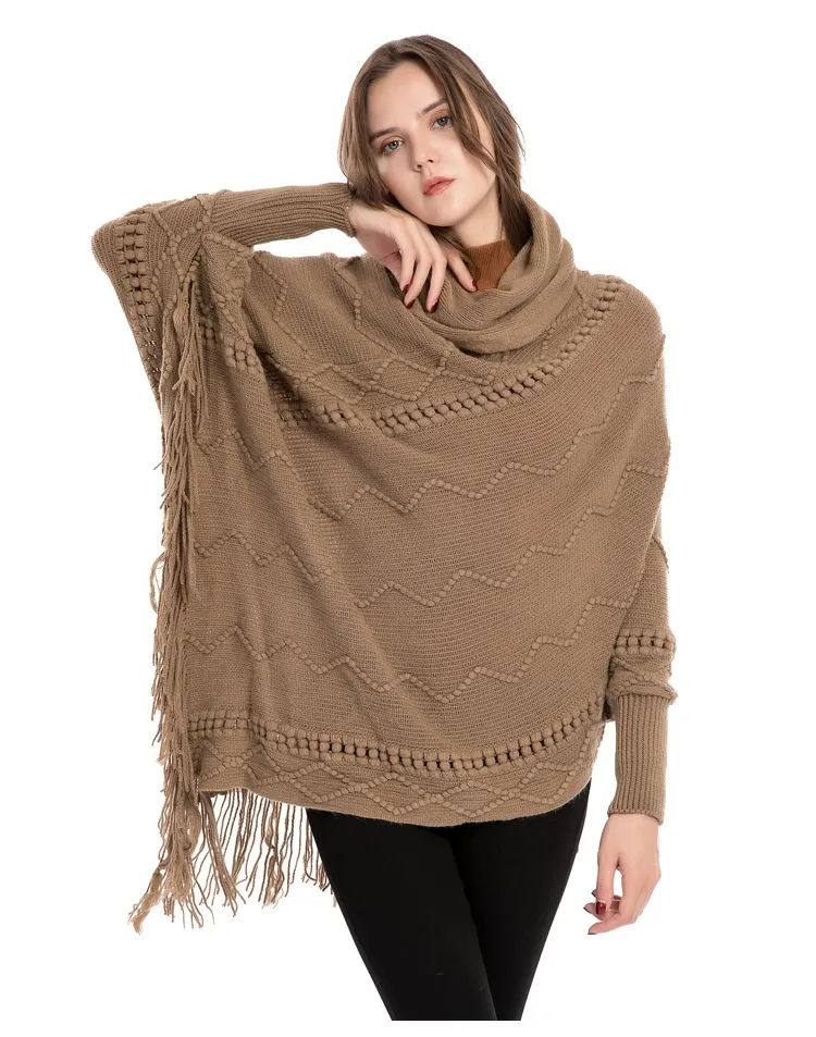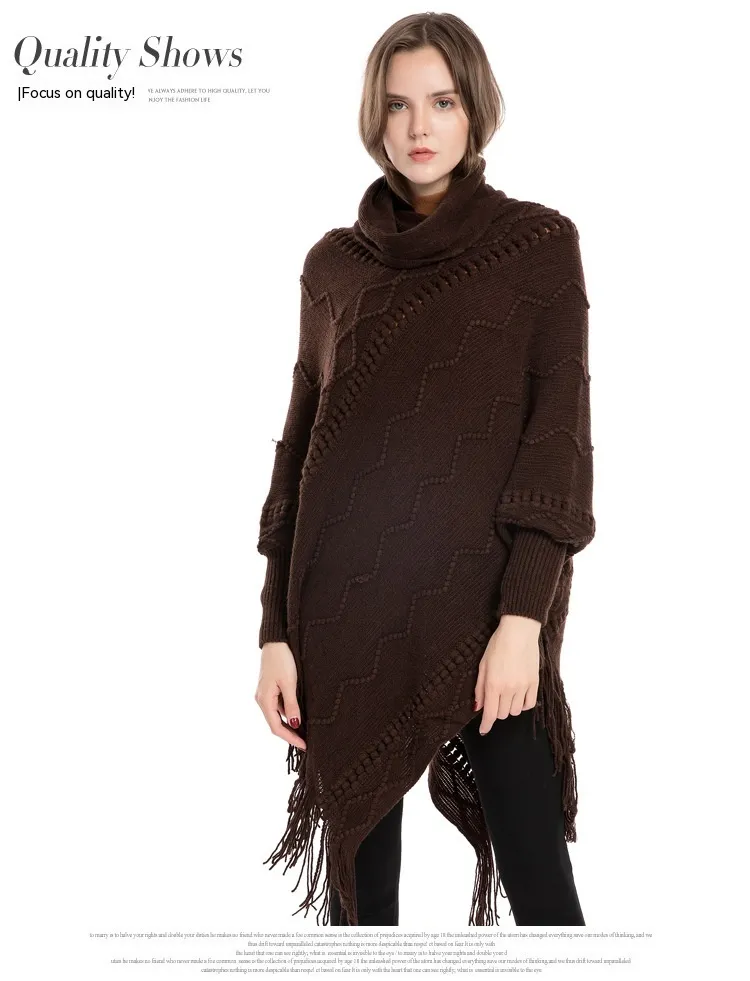 Acrylic Fringed Sweater High Collar Warm Sleeve Pullover Cloak