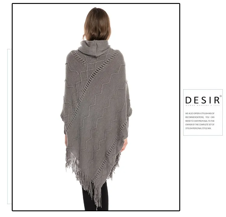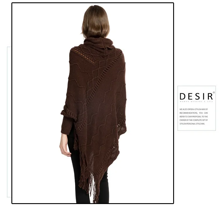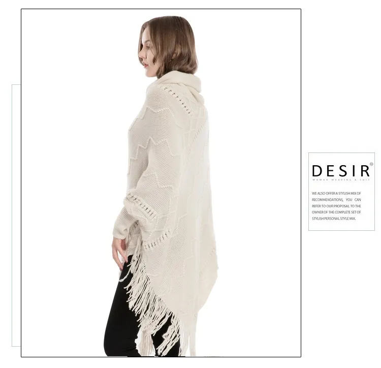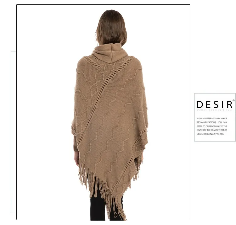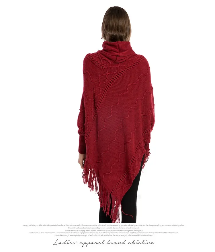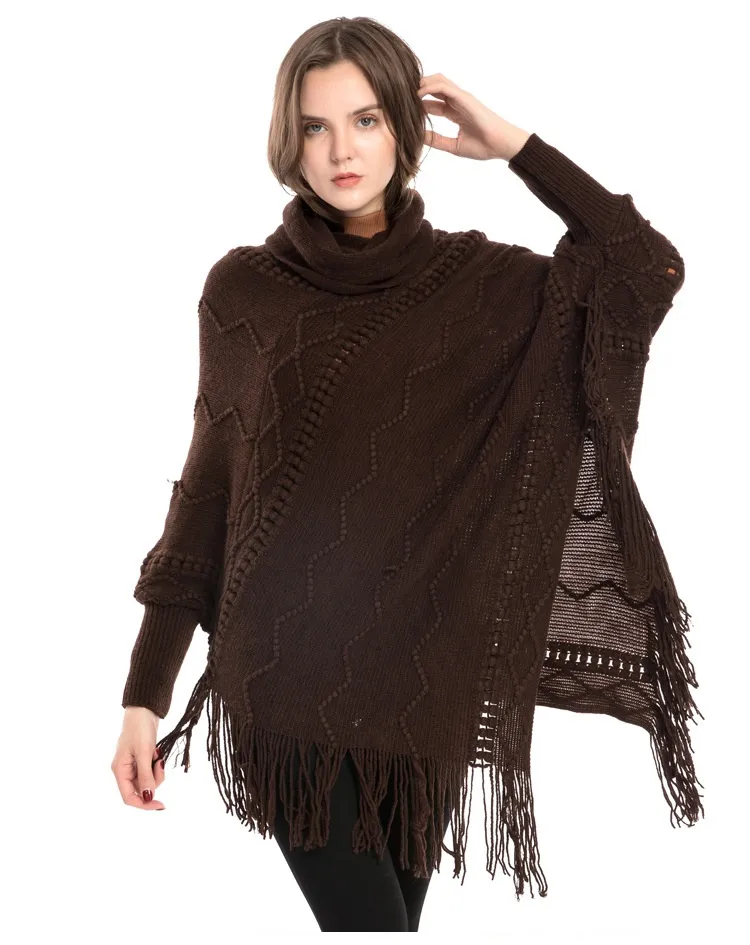 Acrylic Fringed Sweater High Collar Warm Sleeve Pullover Cloak