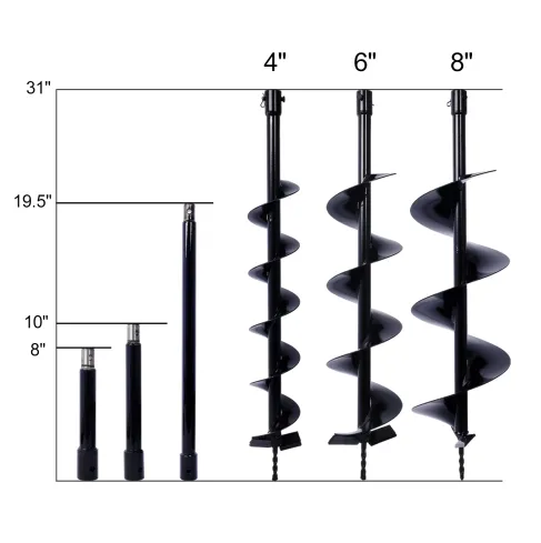 Product Name:Auger Drill Bit for Planting Hole, Bulb Bedding Digging Post Hole Planting Tool for 3/4" Shaft Auger,Hole Digger Replacement Auger Bits Earth Auger Digging Bit 4IN+6IN+8IN+EXTENSION ROD KIT