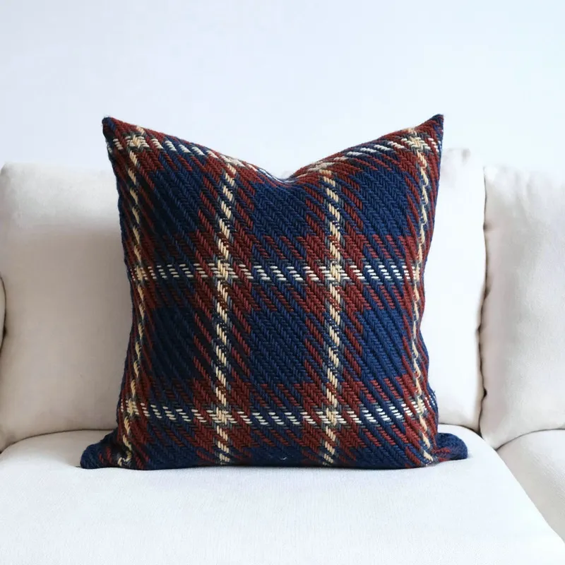Affordable Luxury Style Plaid Wool Pillow Sofa Cushion