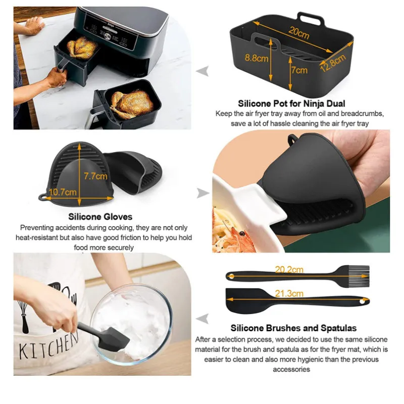 Perfect Fit for Most Air Fryers: Designed to fit most air fryer models, this rectangular set is compact and easy to store.