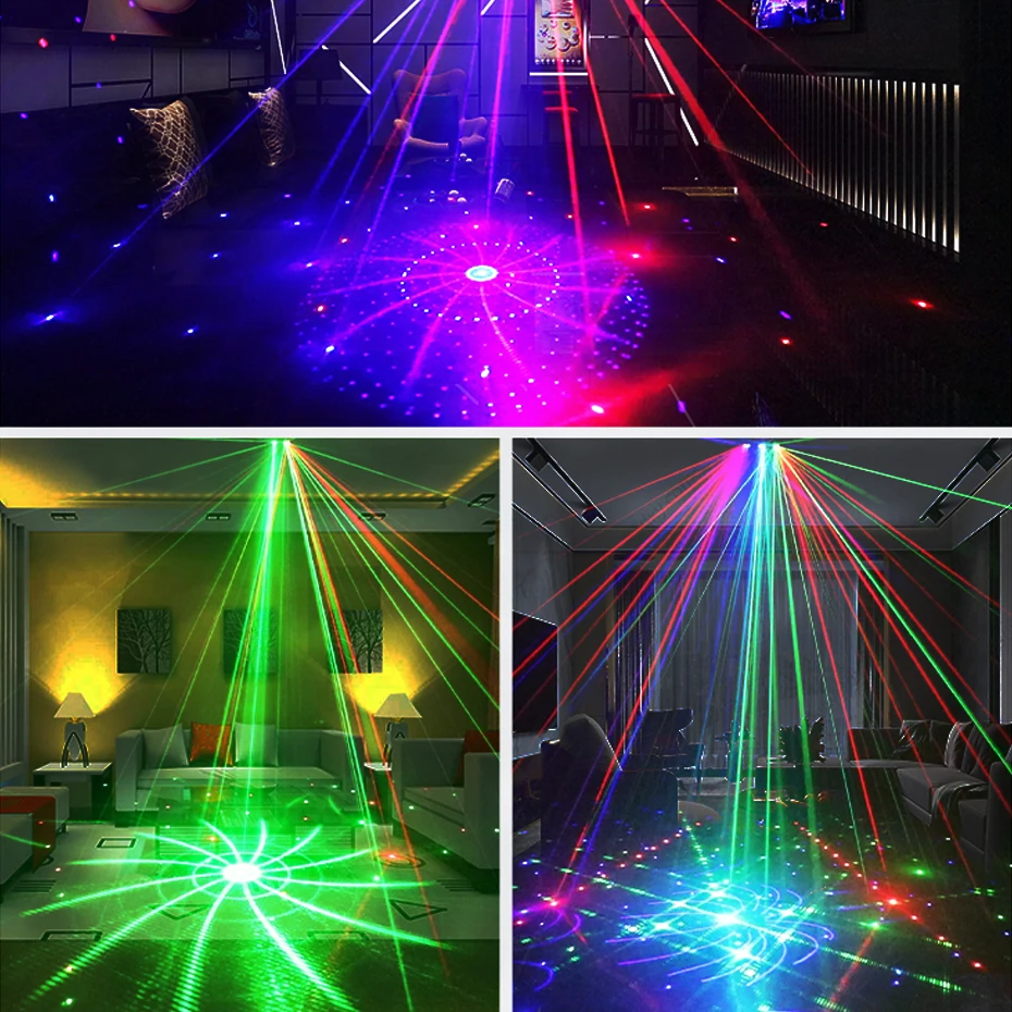 Transform any event into an unforgettable celebration with the ALIEN 21-Hole RGB Party DJ Disco Beam Patterns Stage Laser Light Projector. Designed for parties, weddings, and special occasions, this versatile light projector combines RGB, UV, and LED strobe effects to create a mesmerizing light show that syncs with your music.