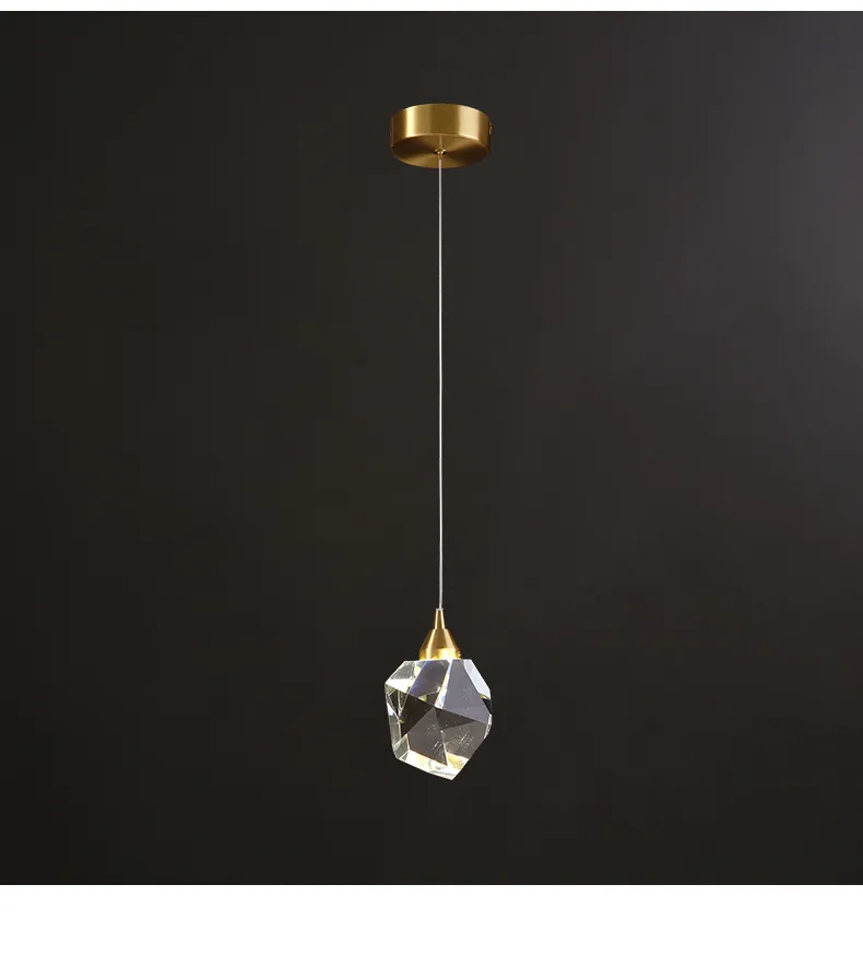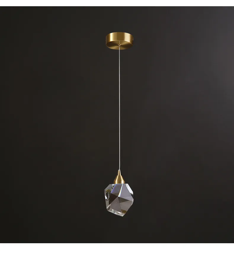 All Copper Light Luxury Crystal Chandelier Modern Minimalist Restaurant Three-Head Chandelier