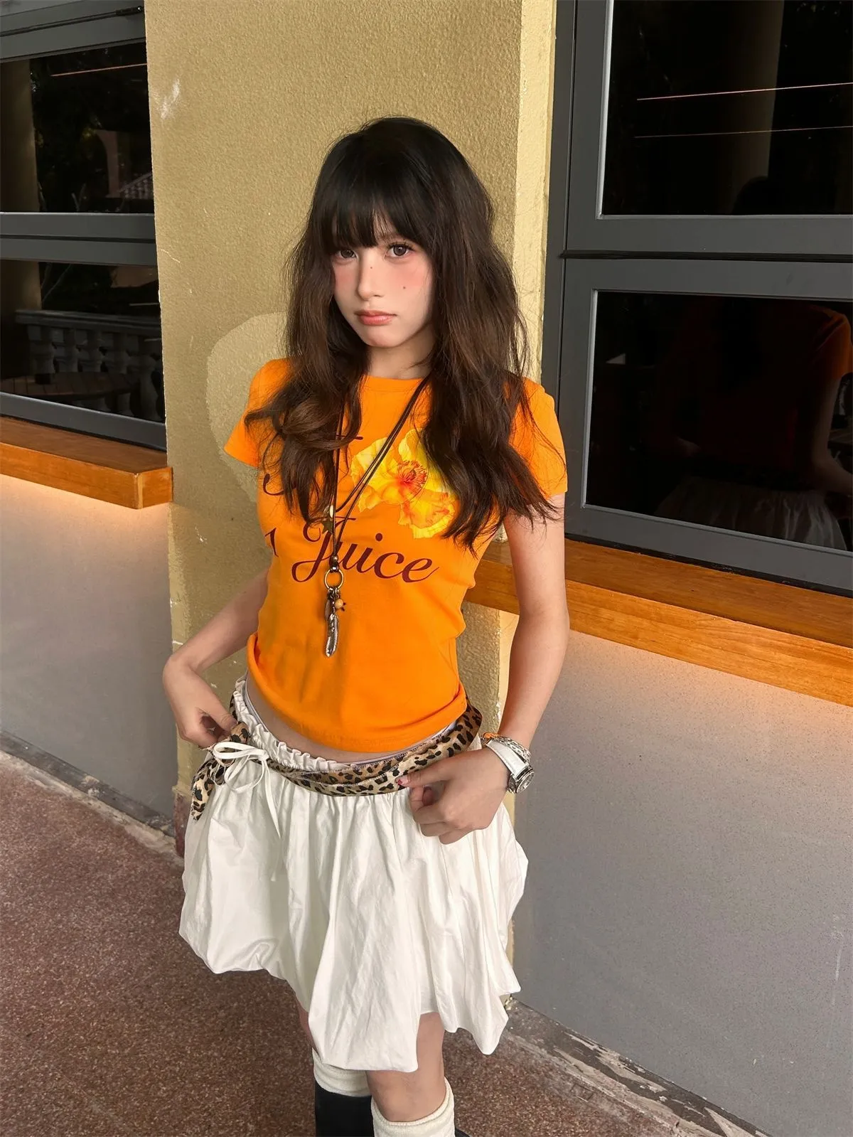All-matching Summer Orange Printed Short Sleeve