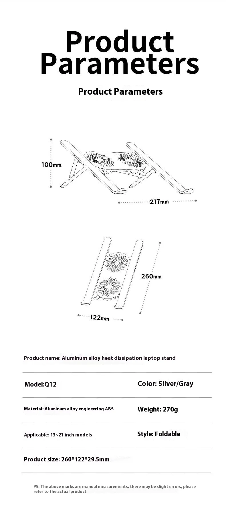 The Aluminum Alloy Notebook Stand Portable Folding Lifting Tablet Height Increasing Desktop Twin Fan Computer is the ultimate tool for improving your workspace, providing both comfort and functionality. With its ergonomic design, efficient cooling system, and durable construction, this stand enhances your productivity while protecting your devices from overheating. Whether you’re working from home, studying, or gaming, this stand is a must-have addition to your desk.