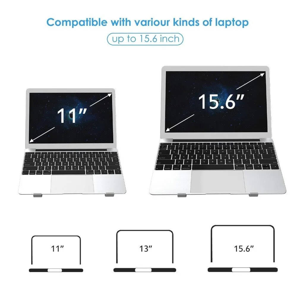 Made from high-quality aluminum, this stand offers a sturdy and lightweight frame that supports laptops and notebooks of all sizes, including 13-inch, 15-inch, and 17-inch devices. The adjustable design allows you to find the ideal viewing angle, reducing neck and eye strain, and promoting healthier posture during long work or study sessions.