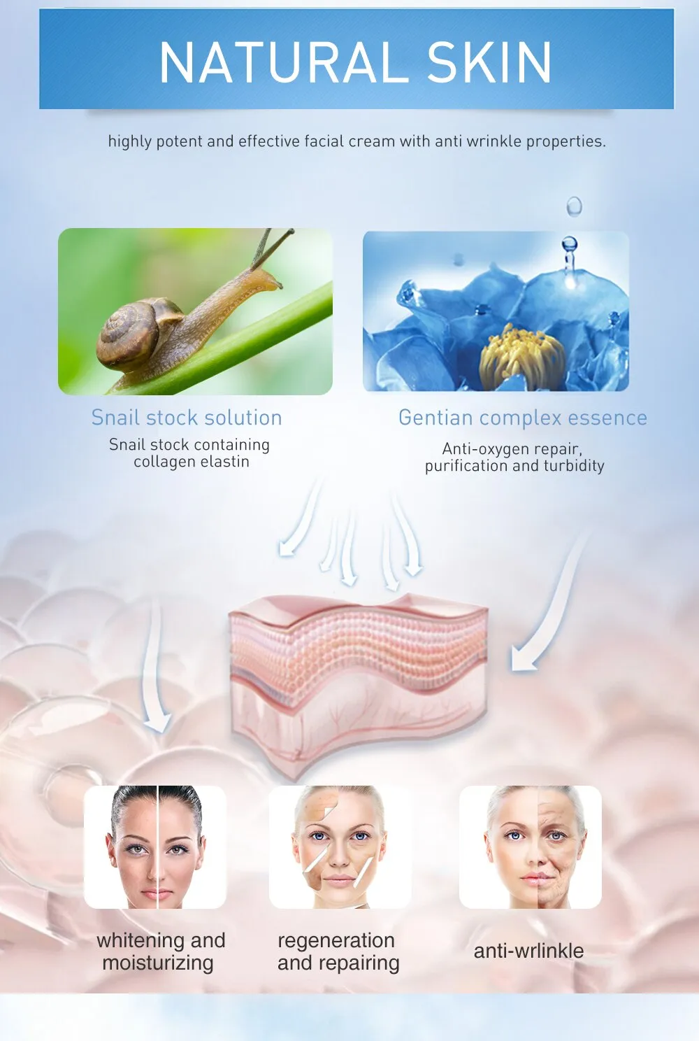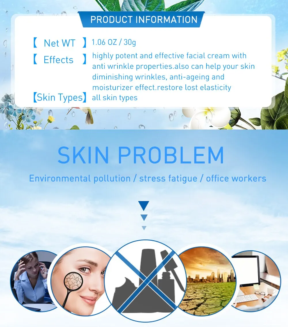 Highly potent and effective facial cream with anti wrinkle properties.Also can help your skin diminishing wrinkles, anti-ageing and moisturizer effect.Boost hydration levels, speed cell turnover , restore lost elasticity and ensure long lasting moisturizing all day long.How to use:
