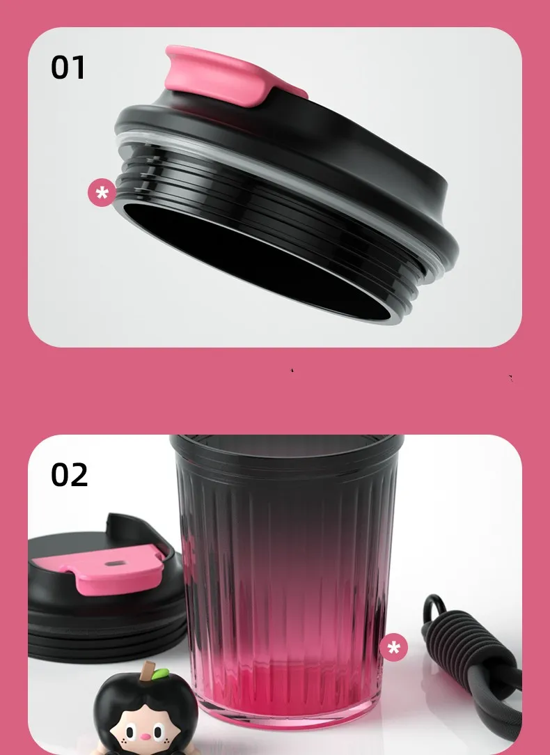 Color: sweet cool black pink [450ML], ice transparent black Green [450ML], sweet cool black pink [doll with handle] [450ML], ice transparent