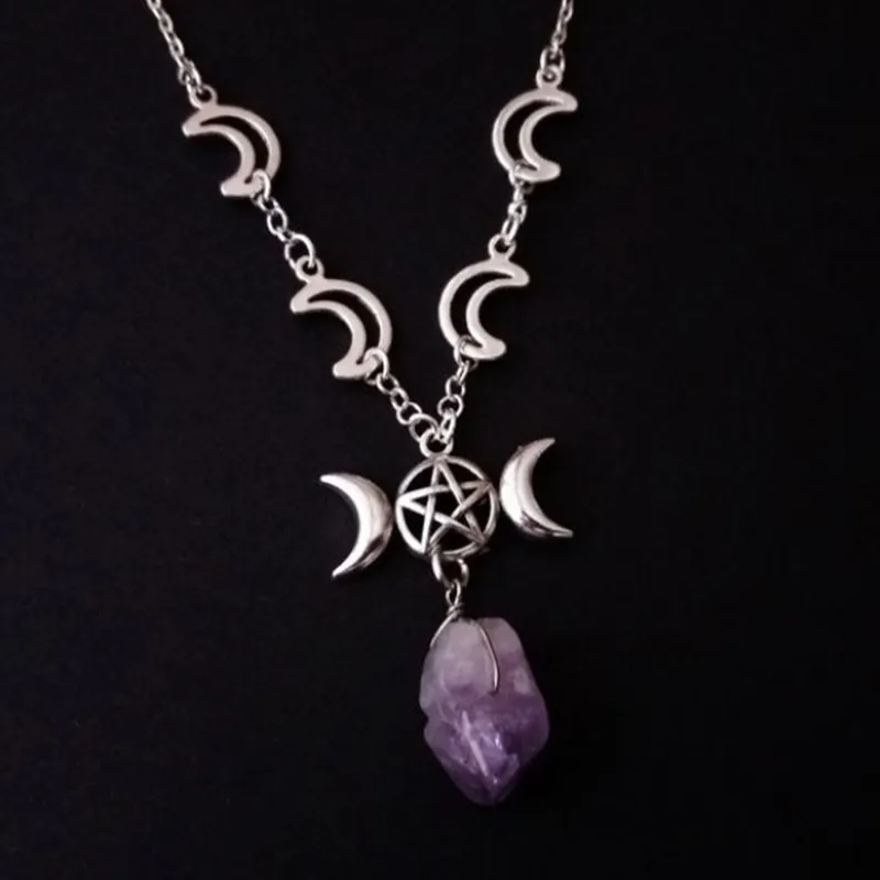 Amethyst Pendant DIY Star Moon Necklace
