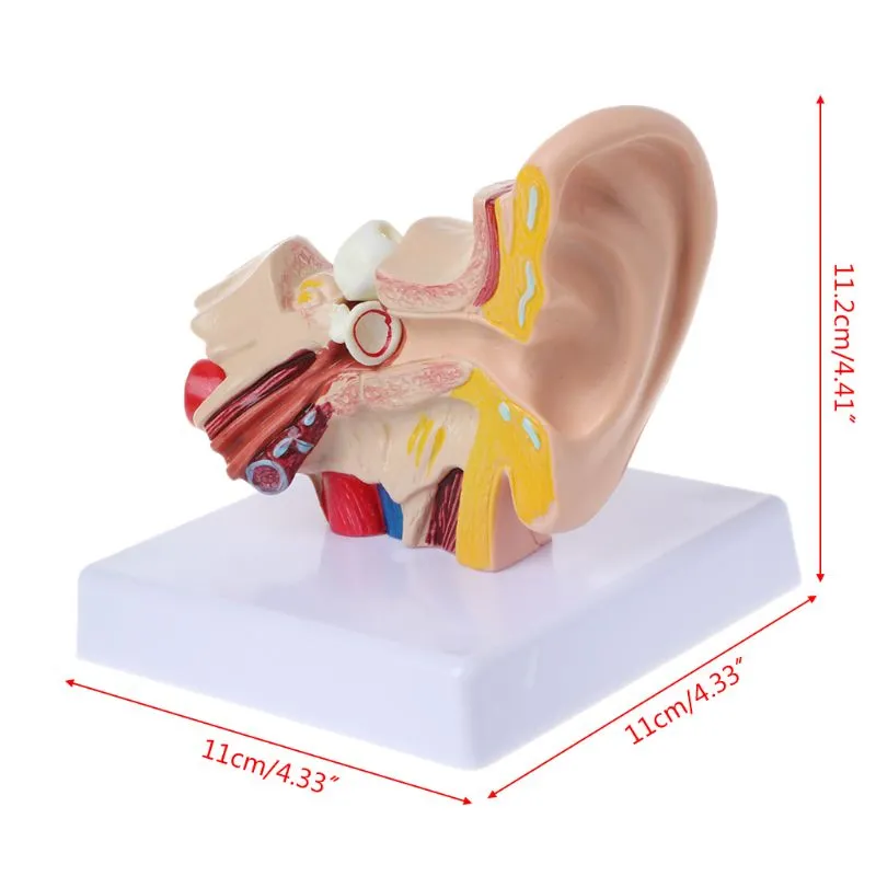 The model includes cross-sectional views, allowing users to see the inner structures of the ear, including the cochlea and auditory nerve. This cross-sectional design makes it easier to visualize how sound waves travel through each part of the ear, convert into electrical signals, and are interpreted by the brain. This feature is particularly useful for understanding the full auditory pathway and diagnosing ear-related issues.