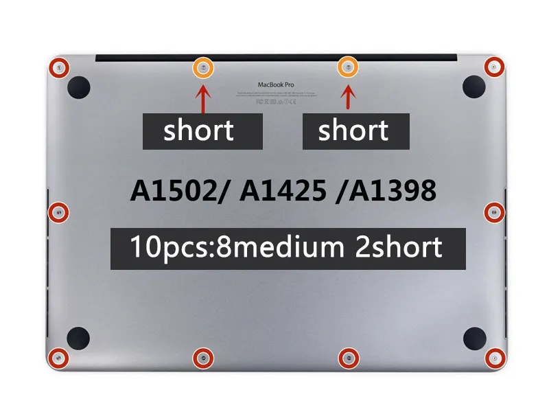Applicable models: General Macbook Pro Retina A1502, A1398, A1425 Bottom shell screw replacement