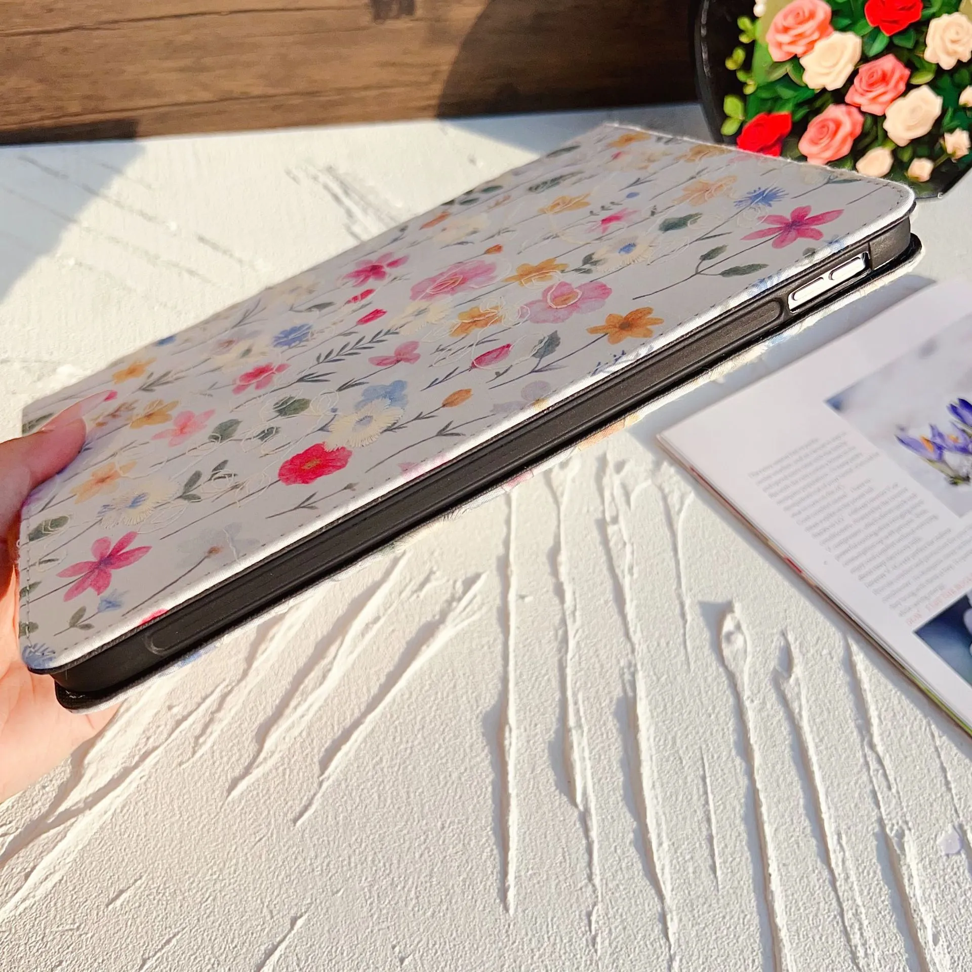 📱 Pad Protective Leather Case – Flower Design & Drop-resistant with Pen Slot