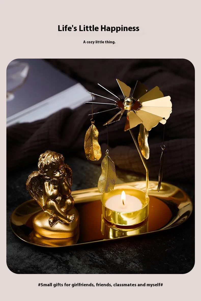Aromatherapy Candlestick Girl Heart Golden Rotating Atmosphere Device