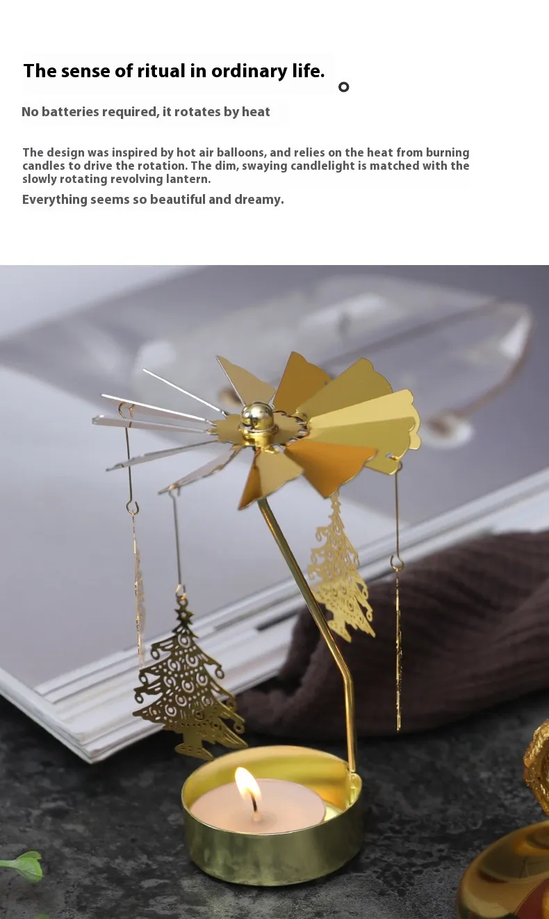 The gentle rotation of the candlestick enhances the ambiance, reflecting soft light and adding a dynamic yet calming element to your space.