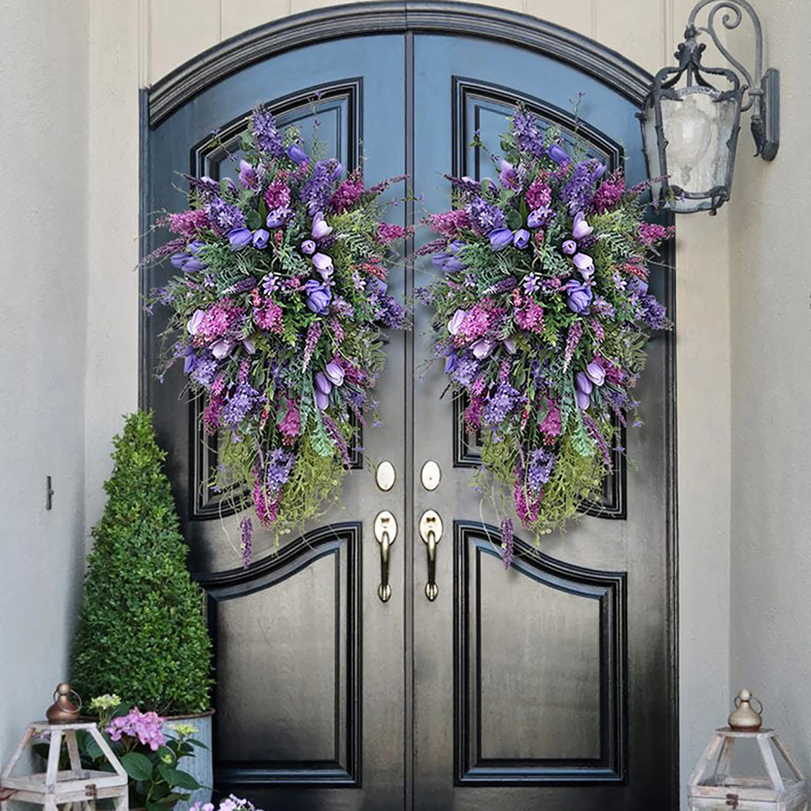 Spring Purple Tulip Wreath: Hyacinth Hydrangea Garland