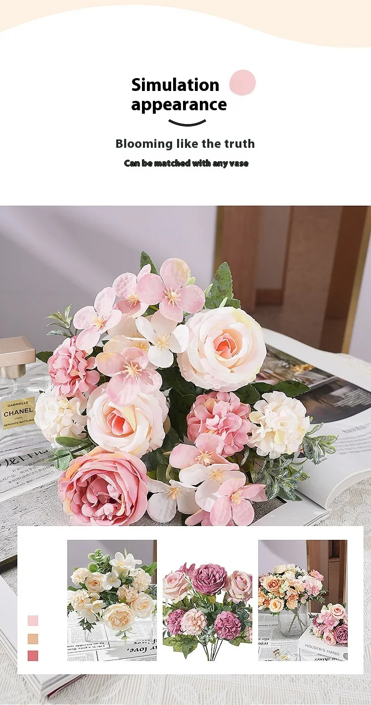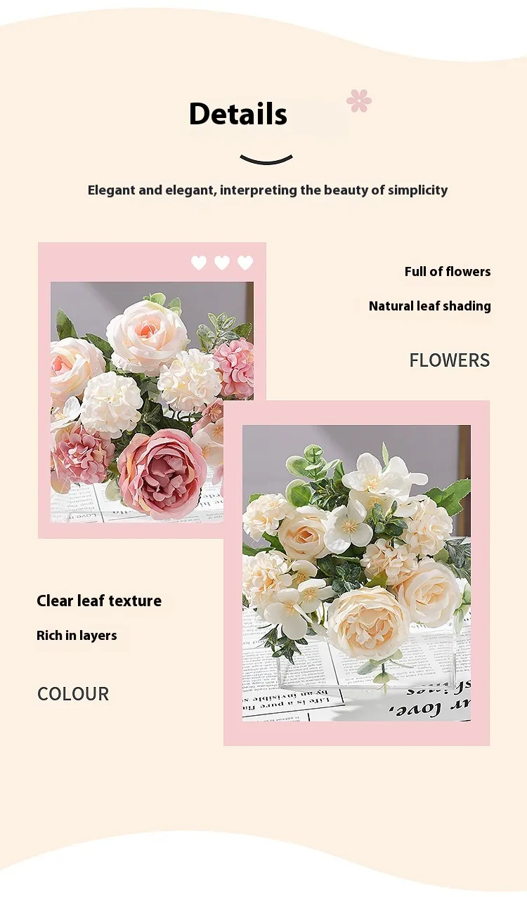 Our artificial hydrangeas are crafted to mimic the appearance of real flowers, offering intricate petal detailing, rich textures, and