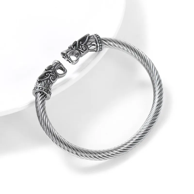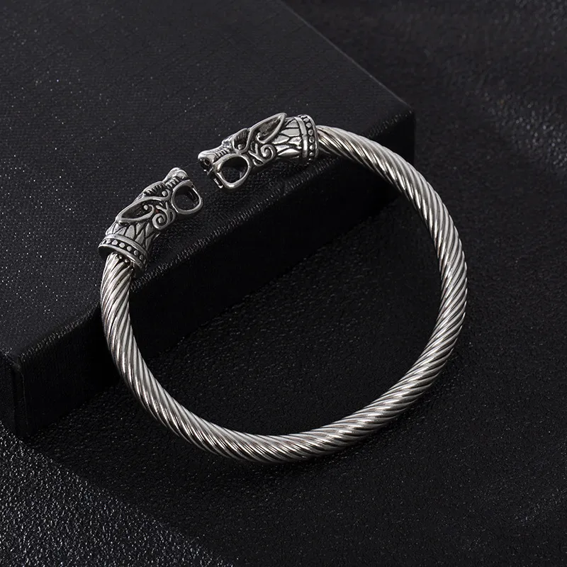 Asgard Crafted Grey Wolf 's Head Torc Bracelet