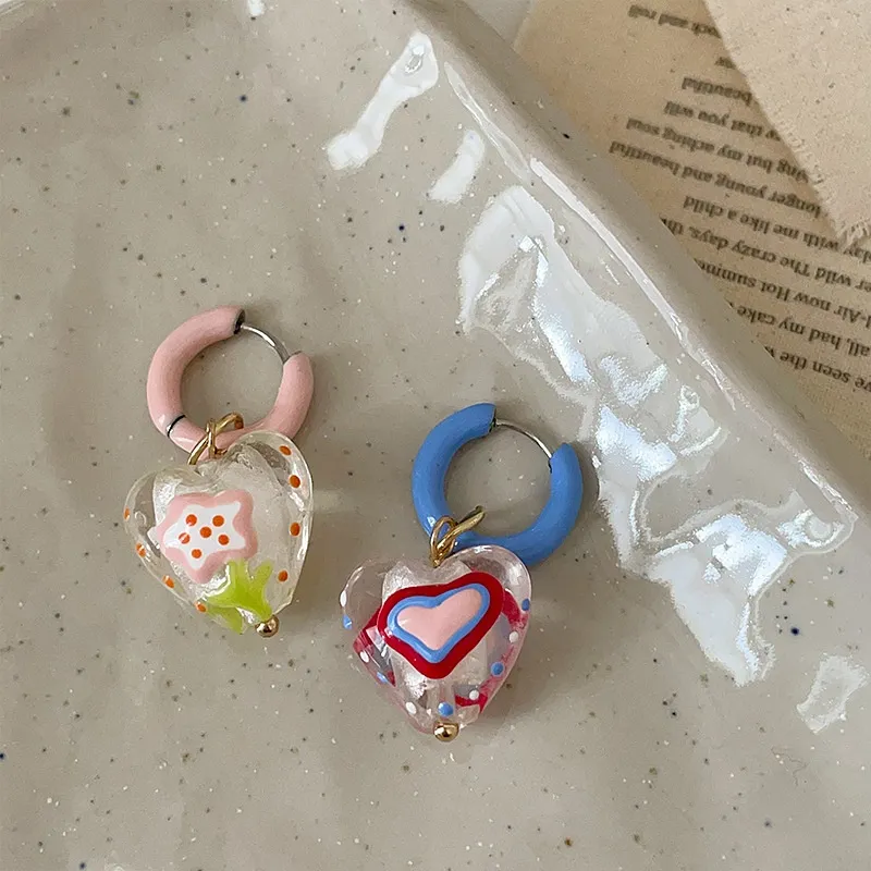 Asymmetric Design Dripping Transparent Heart-shaped Earrings