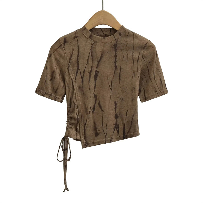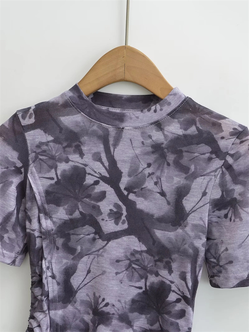 This t-shirt is not merely a piece of clothing; it is a wearable art piece that brings a poetic touch to everyday wardrobes. The short sleeves are perfect for the heat of summer, and the unique shoulder cut provides a modern twist that can transition effortlessly from day to night wear. Whether it's paired with casual jeans for a daytime outing or with an elegant skirt for an evening event, the "Asymmetric Inked Mesh Tee" promises to elevate any ensemble.