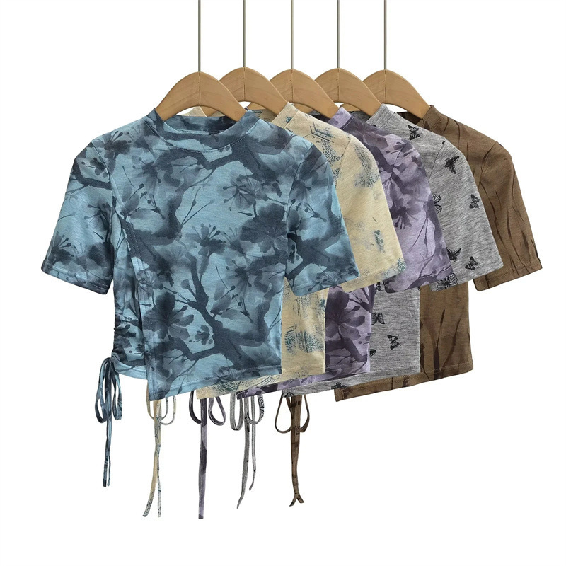 Introducing the "Asymmetric Inked Mesh Tee," a marvel of design that gracefully marries the ethereal beauty of Chinese ink paintings with contemporary fashion. This exceptional t-shirt reimagines summer wear, infusing it with an artistic spirit captured in the delicate and fluid motifs of butterflies—a symbol of grace and transformation in traditional Chinese culture.