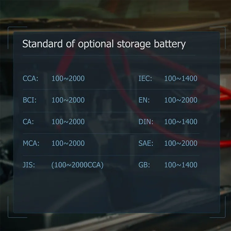 2.Check Battery Capacity - Cold Cranking Amps (CCA), DIN, EN and IEC information relative to battery rating.