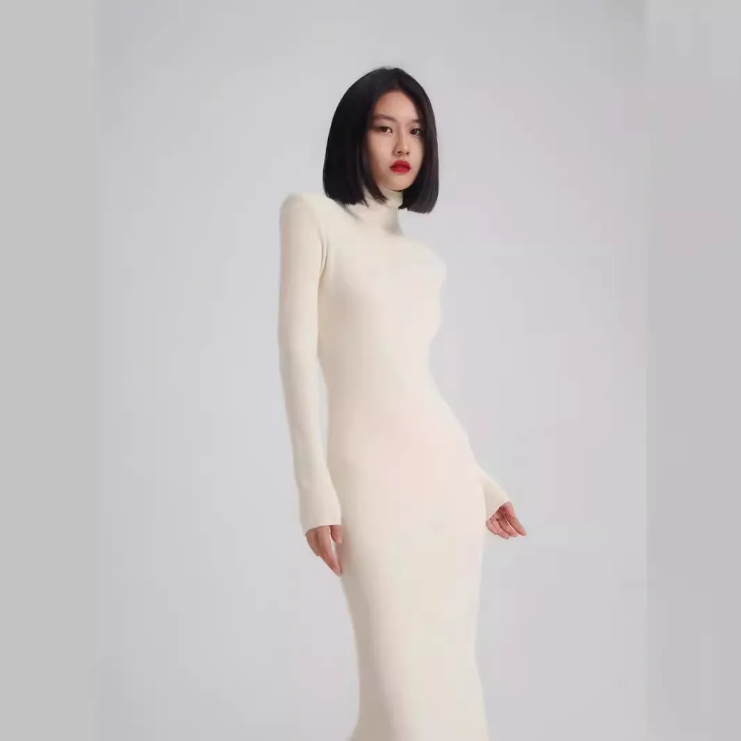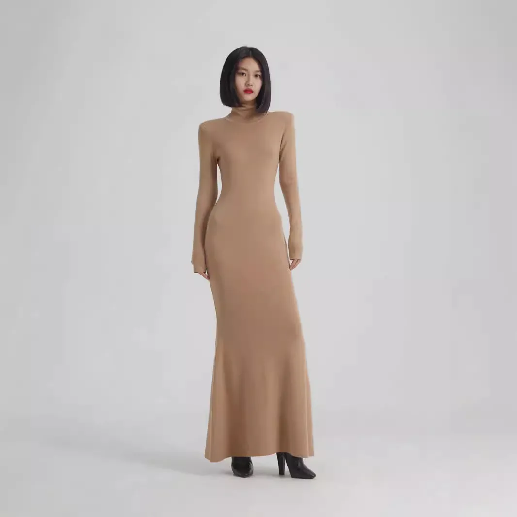 Crafted from high-quality wool blend, this fishtail skirt dress combines softness with durability, ensuring you stay comfortable throughout the day. The fitted sheath silhouette elongates the body, while the fishtail hem adds a touch of elegance and movement. Whether paired with boots for a casual day look or styled with heels for an evening out, this versatile dress transitions effortlessly between day and night. The natural warmth of the wool makes it an essential addition to your cold-weather wardrobe, allowing you to stay stylish without compromising on comfort.