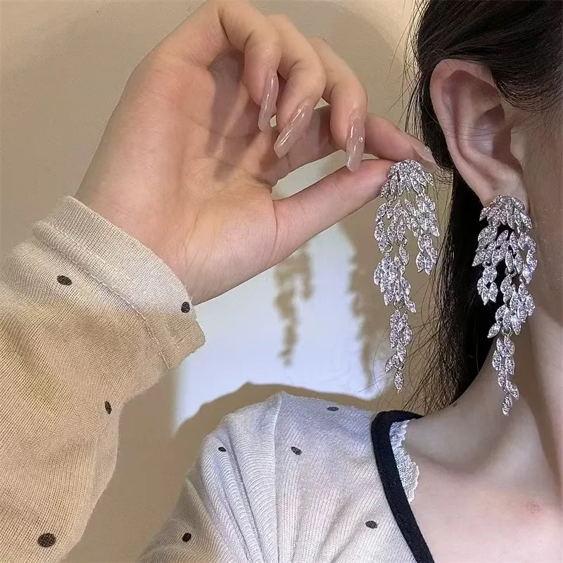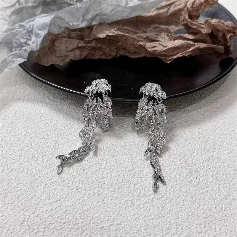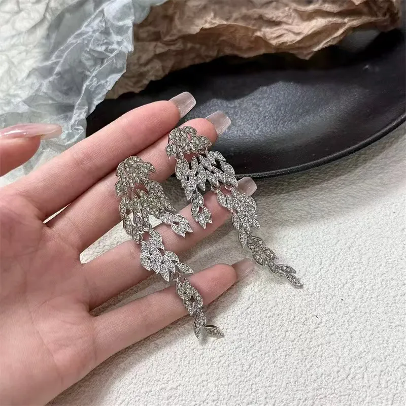 Autumn And Winter Light Luxury Leaves Tassel Long Earrings