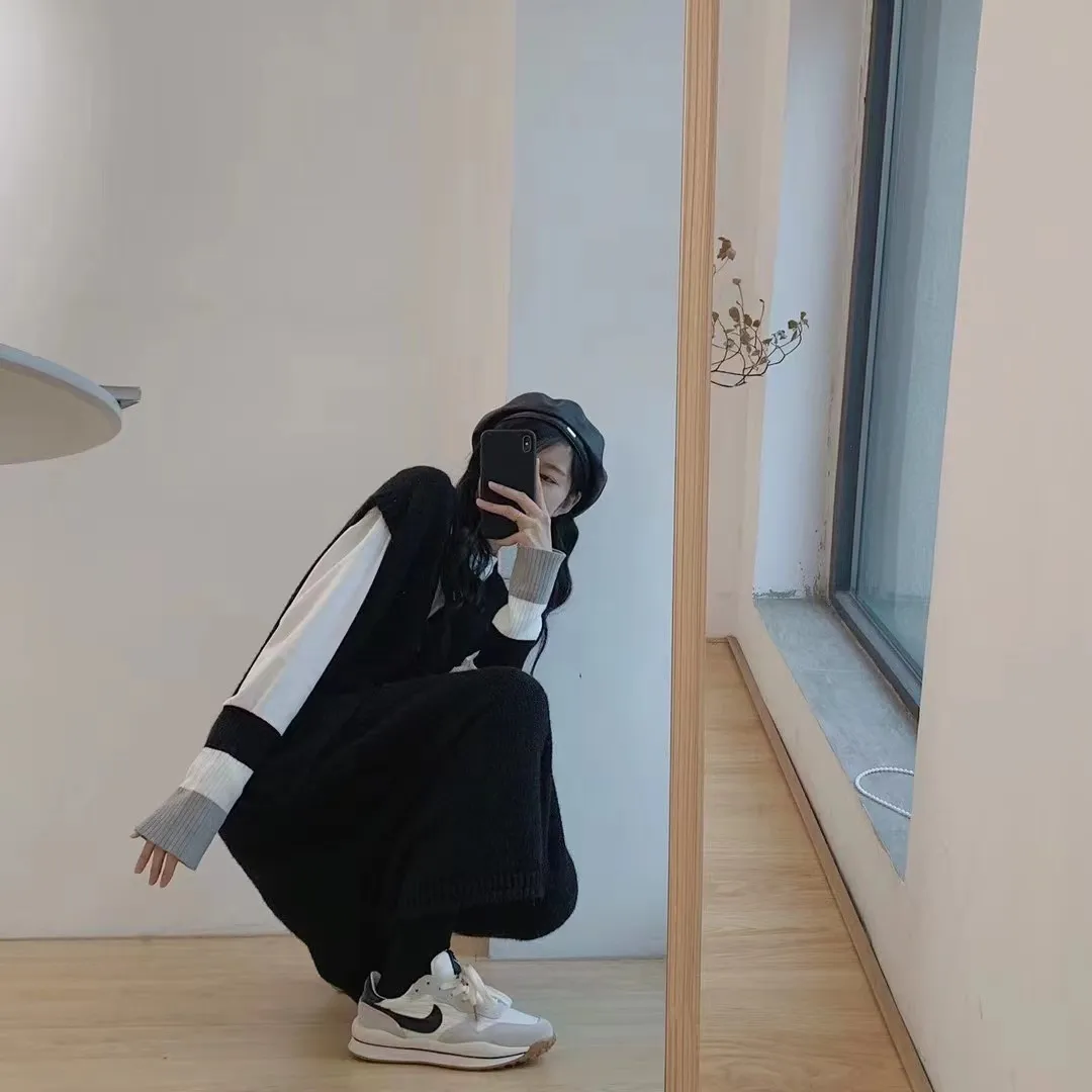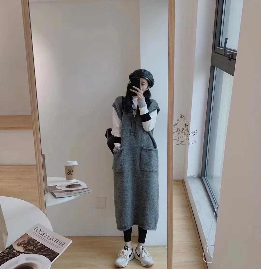 Autumn and Winter Loose Cold Wind Sweater and Sleeveless Dress