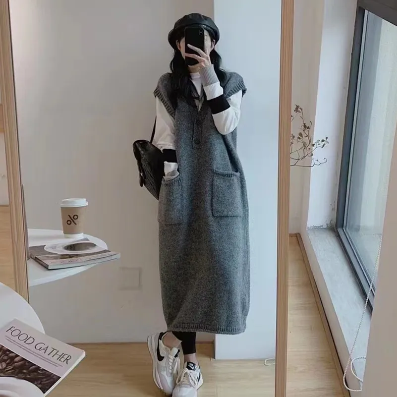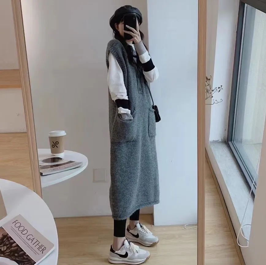 Autumn And Winter Loose Cold Wind Sweater And Sleeveless Dress