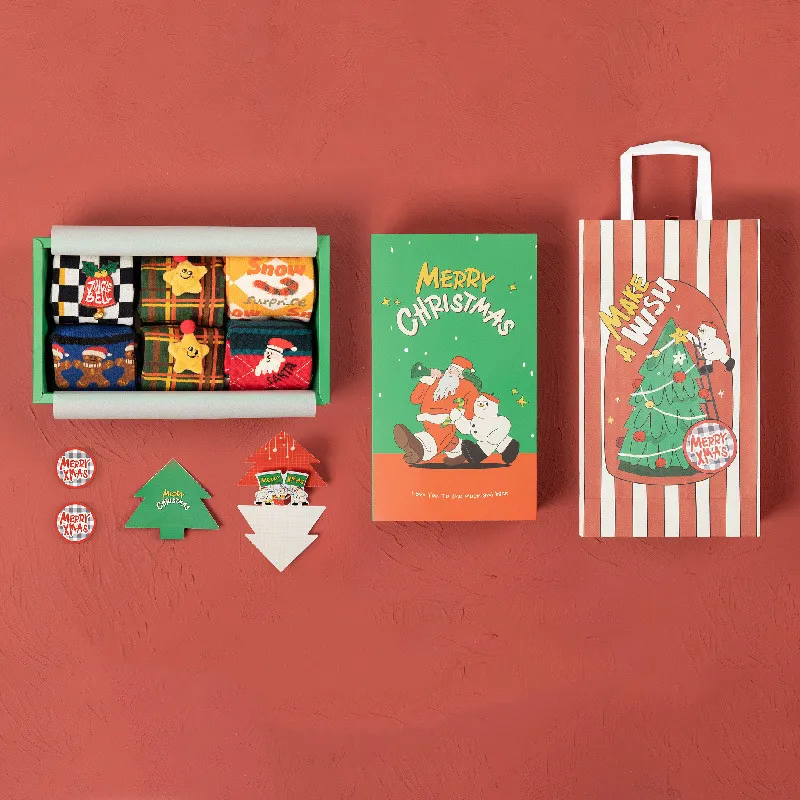 Ideal for Christmas, this gift box embodies the spirit of the season with its festive design and warm, cozy socks.
