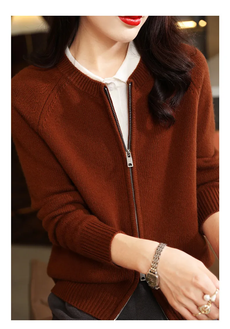 Autumn And Winter Pure Wool Cardigan Women's Round Neck Loos