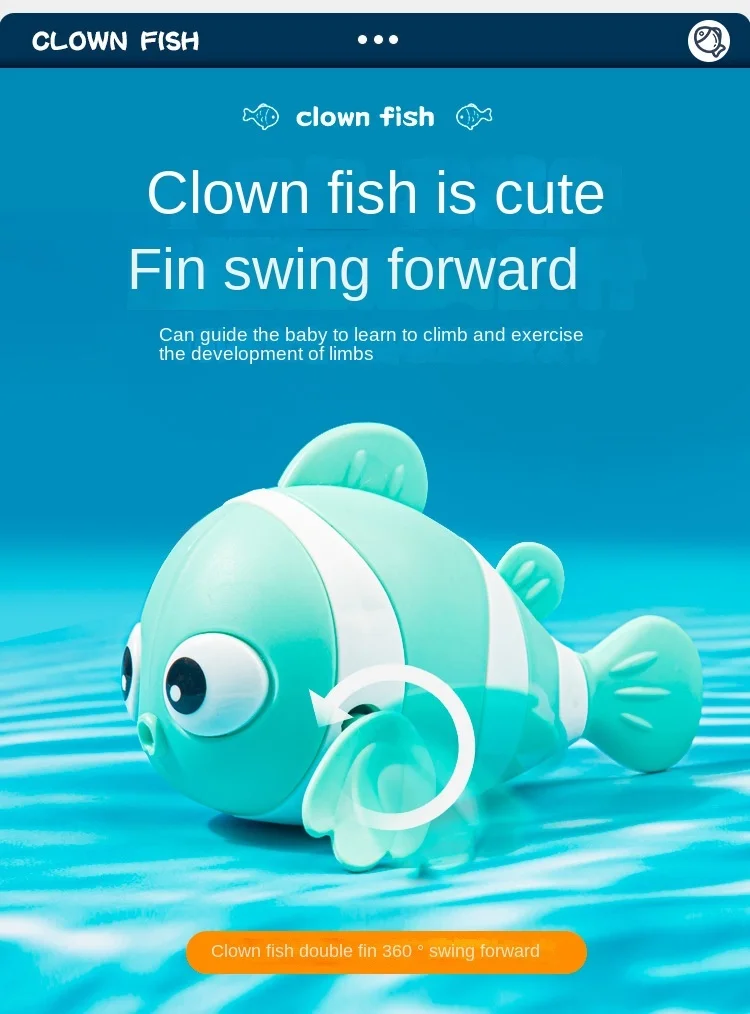 Baby Bath Toys - Cute Swimming Fish Cartoon Animal Wind-Up Floating Toys