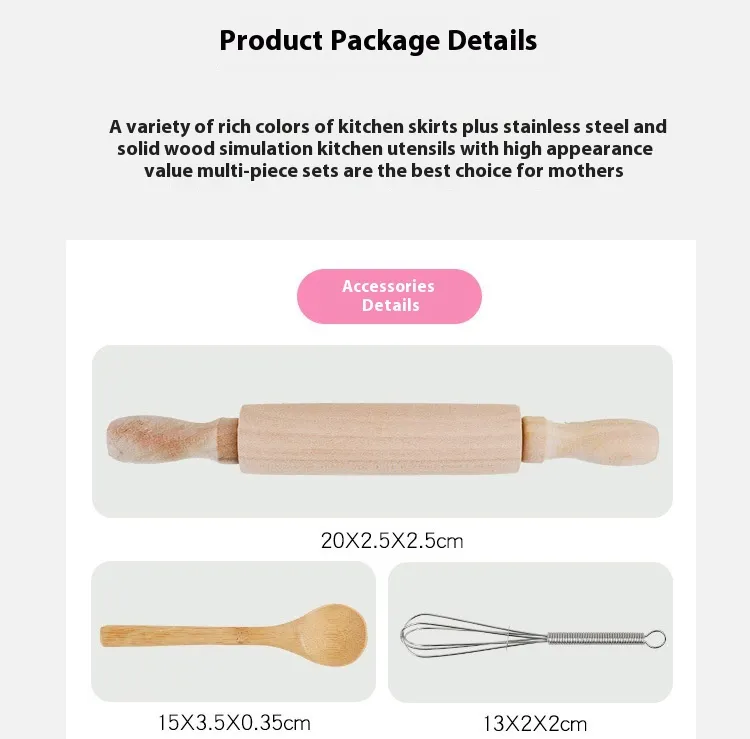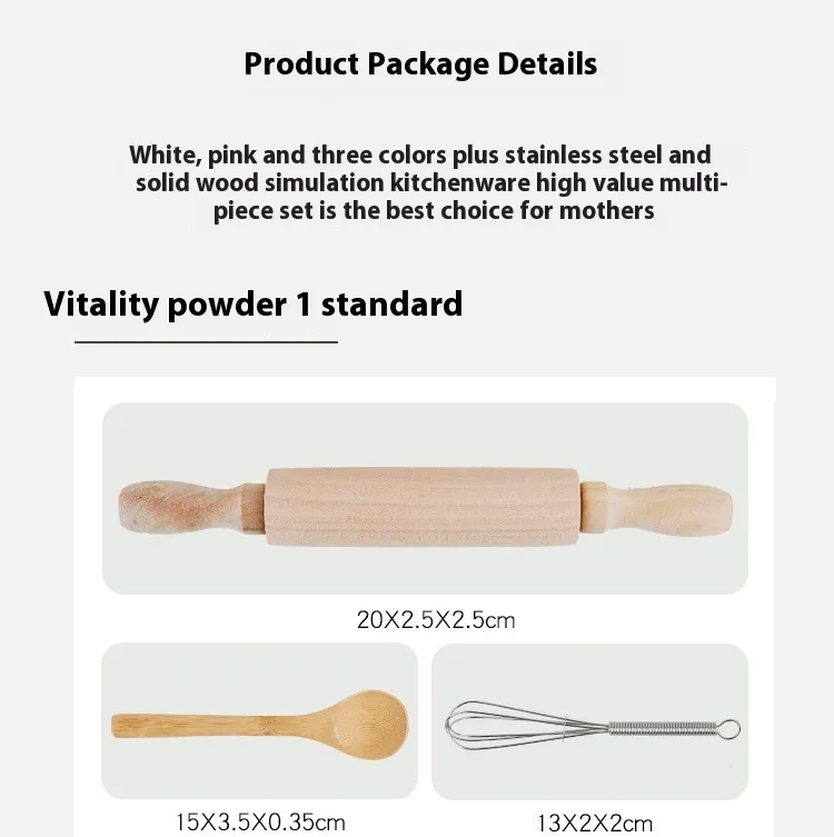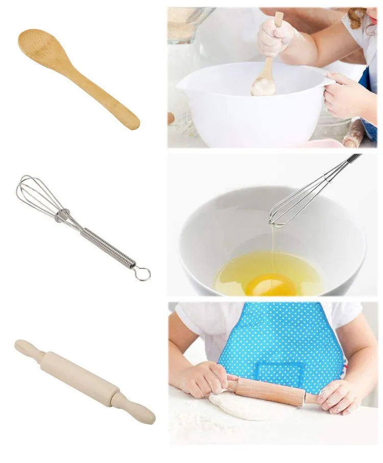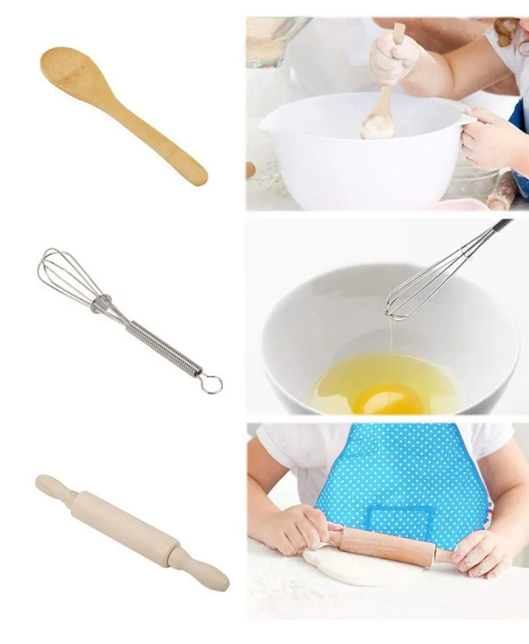 Beyond the pretend play aspect, the Baby Bib Kitchen Toy Cake Baking Cooking Tools set also introduces children to basic kitchen skills. As they handle the various tools and utensils, children begin to learn the names of everyday kitchen objects such as mixing bowls, whisks, spatulas, and rolling pins. These early lessons help build a foundation for practical skills they will use later in life when they begin to learn to cook or bake in the real kitchen.
